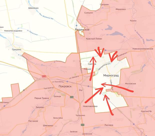 t.me/On_War_On_War На Красноармейском фронте ВС РФ наступают со стороны Красноармейска далее на север и северо-запад. Идут позиционные бои в юго-восточной части Гришино. Продолжается боевая работа армии России в Димитрове. На рубеже Суворово – Никаноровка после ожесточённых боёв выровнена линия фронта, противник оттеснён от ключевых высот. ВС РФ дожимают врага в Софиевке, теснят в Торецком, чтобы создать плацдарм вдоль реки Казённый Торец, которая будет прикрывать левый фланг при продвижении к Дружковке.