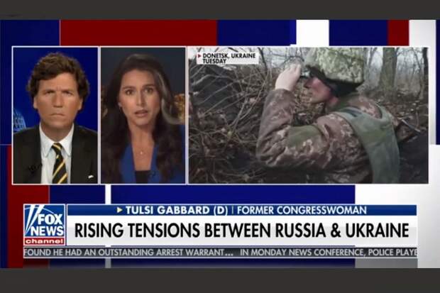 В эфире программы «Вечер с Таккером Карлсоном» на телеканале Fox News экс-конгрессвумен Тулси Габбард предостерегла американцев от парадных реляций о «России, которая заплатит цену» и призывает задуматься о возможных тяжёлых для США последствиях вмешательства в украинский конфликт, отметил в своём блоге американист Дробницкий.