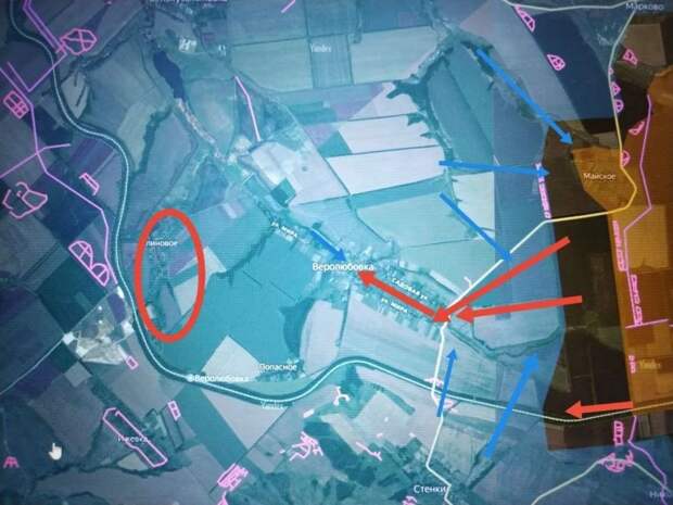 Значимым успехом на данном участке фронта, по оперативным данным, стало установление контроля ВС РФ над большей частью Веролюбовки. Продолжается также штурмовые действия в районе Миньковки.