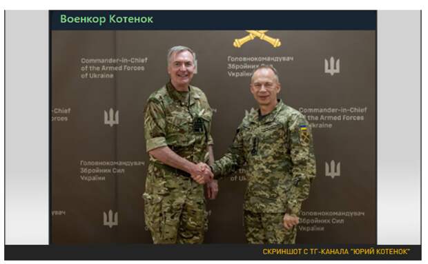 Между тем другой европейский вояка, глава британского генштаба Радакин, прибыл в Киев, где встретился с главкомом ВСУ Сырским. В качестве повестки заявляется "оперативная обстановка на фронте и критические потребности ВСУ".