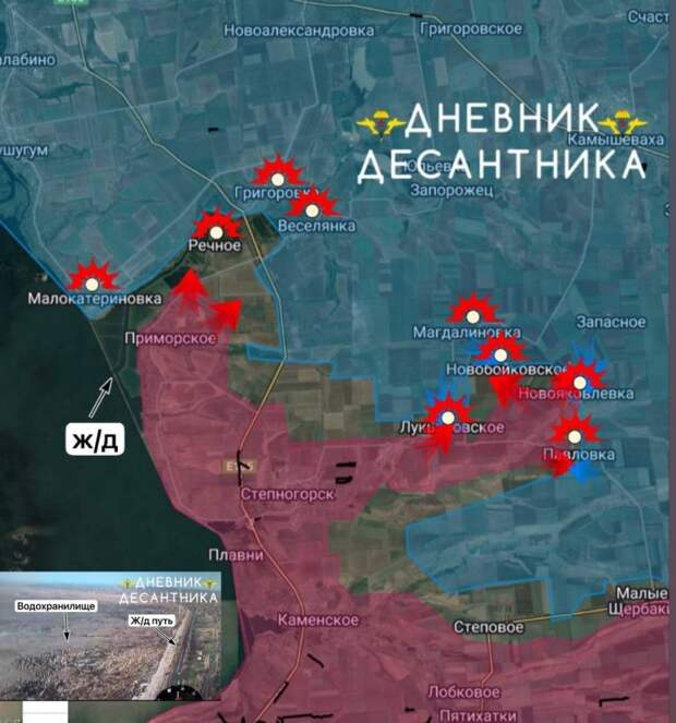 Западнее Новобойковского наши подразделения пробили оборону ВСУ и продвинулись вперед. В районе Приморского и прилегающих к нему сел также ведутся бои, однако о полном контроле говорить преждевременно. Ситуация в Малокатериновке осложняется открытой местностью, что пока исключает штурм и вынуждает действовать огневыми средствами.