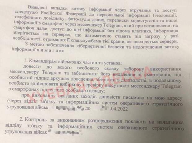 Чубатые запретили украинским военным пользоваться телеграмом и приказали удалить его под роспись.