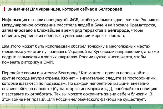 Объявление взял из tg-канала Ю. Витязевой: «УНИАН заявляет о готовящихся терактах в Белгороде»