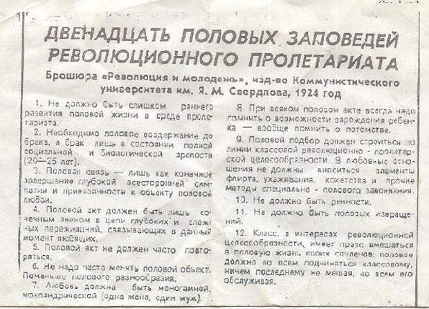 Про нравственную лихорадку— это он не загнул. В стране на самом деле творилось не пойми чего. Женщин кое-где национализировали всерьез, комсомолок обязывали обслуживать комсомольцев, росло число матерей одиночек и бушевала эпидемия сифилиса.