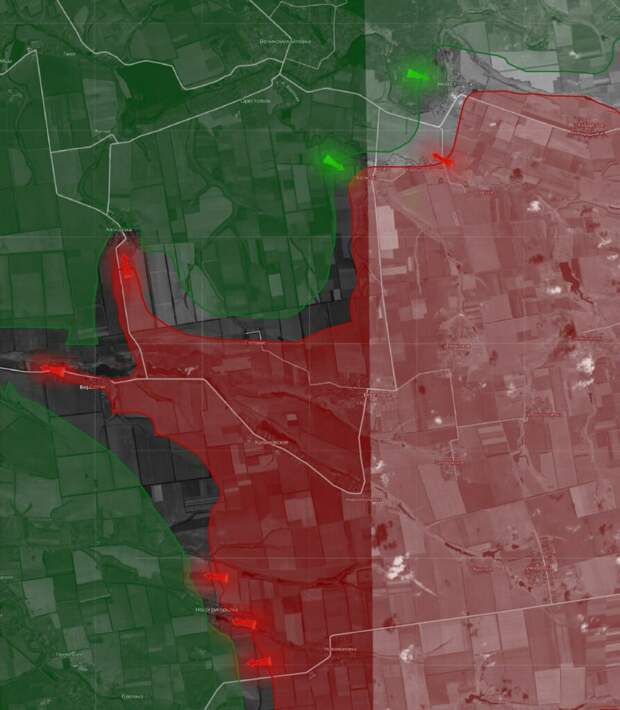 t.me/the_military_analytics На Угледарском направлении ВС РФ наступают на стыке Запорожской и Днепропетровской обл. Штурмовики работают в районе Малиновки, пробиваясь к Зеленому Гаю и Червоному. Выше по фронту наши штурмуют Полтавку, чтобы усилить давление на Успеновку и сформировать глубокий охват Гуляйполя. С опорой на Степовое наши наступают на Алексеевку, уже контролируют половину села, зачистили карман между Алексеевкой и Вороным, участки южнее и восточнее Алексеевки.